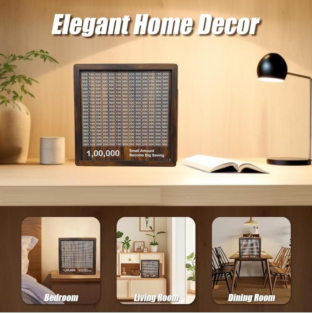 Designed to inspire regular saving, the Savings Challenge Piggy Bank provides a reliable, reusable container for your coins and small savings. Its compact size makes it suitable for desks, shelves, or workspaces, while its sturdy wooden build ensures lasting use.